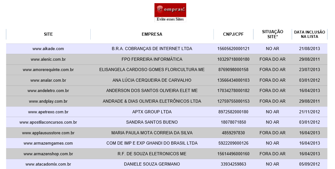 Os endereços entraram na lista porque tiveram reclamações registradas no Procon e ao serem notificados, não responderam ou sequer foram encontrados. A maioria das denúncias foi de não entrega do produto. A relação completa, você confere clicando aqui.